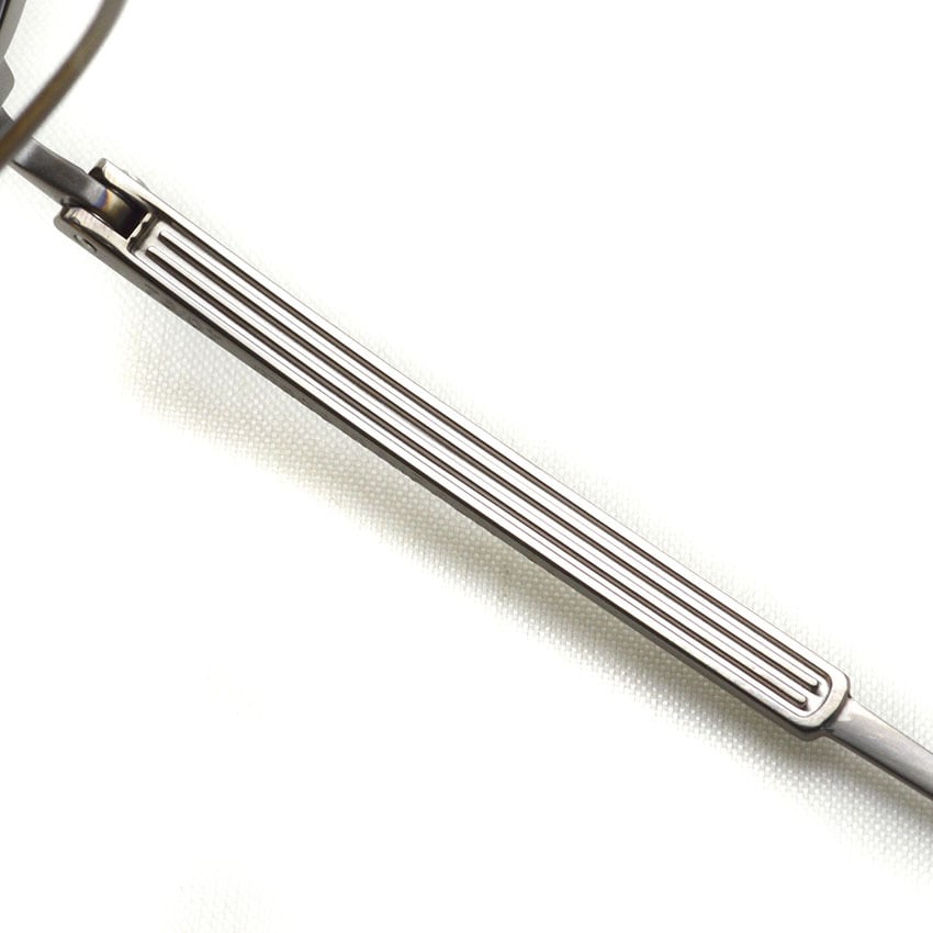 プラスチックフレームでレンズ周りに採用される「テレビジョンカット」をメタル素材で造形しています。