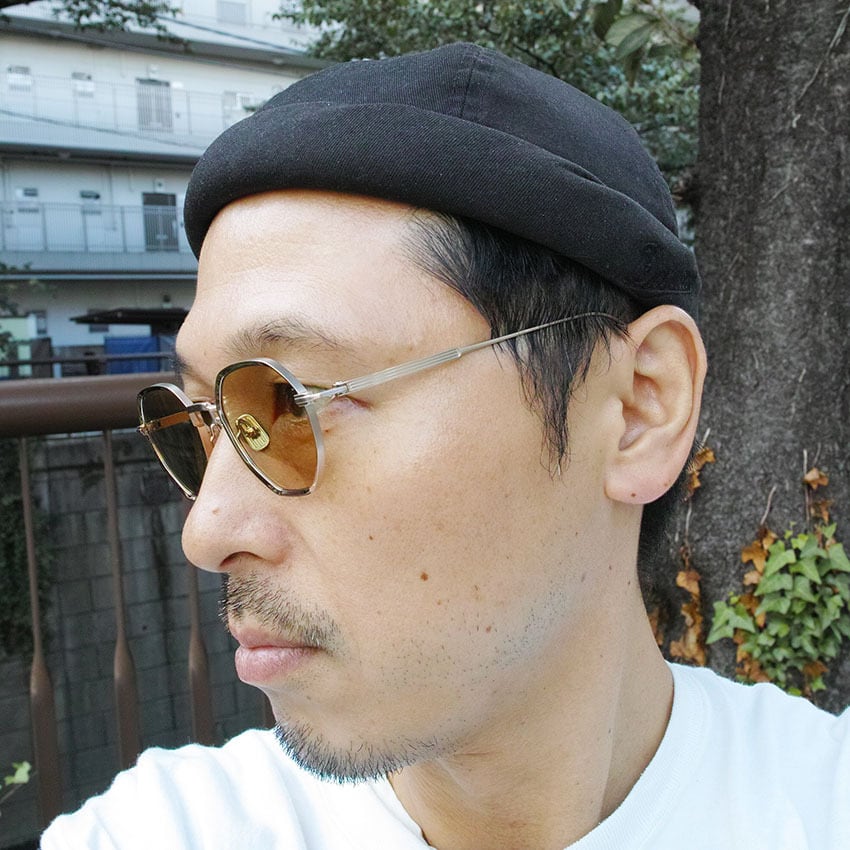 プラスチックフレームでレンズ周りに採用される「テレビジョンカット」をメタル素材で造形しています。