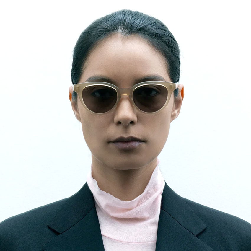 キャットアイやボストンシェイプの雰囲気をまとい、ユニセックスなシルエットラインを追求したフォックスモデル。