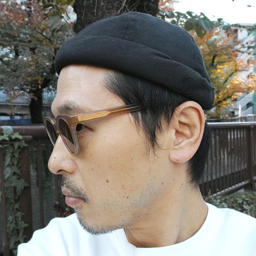 A.D.S.R.が目指すミニマルクラシックを体現したモデルでありながら、フロントトップのブローラインの傾斜を抑え、ややワイドなレンズシェイプにすることで、顔馴染み良くバランスの取れた1本に仕上がった。