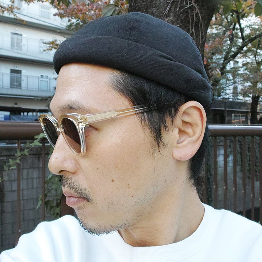A.D.S.R.が目指すミニマルクラシックを体現したモデルでありながら、フロントトップのブローラインの傾斜を抑え、ややワイドなレンズシェイプにすることで、顔馴染み良くバランスの取れた1本に仕上がった。