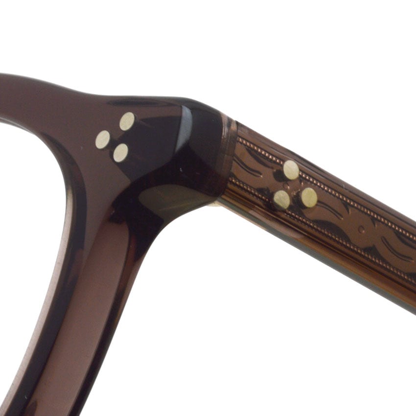 フロント、テンプル丁番には、工場に眠っていたヴィンテージのサンプルに使われていた三角形の台座の丁番をEYEVANオリジナルで再現。