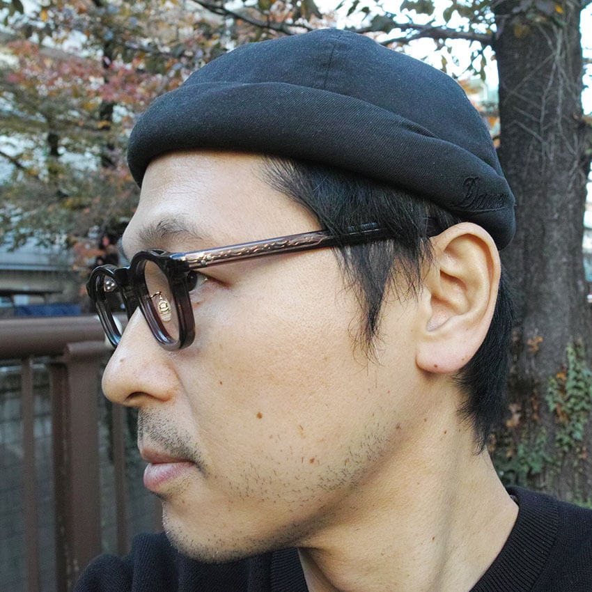 フレンチヴィンテージから着想を得た、エッヂのある肉厚なフロントと極太なワイドテンプルをEYEVAN流にデザインした人気モデル"SADLER"の調整可能なメタルパッドタイプ。