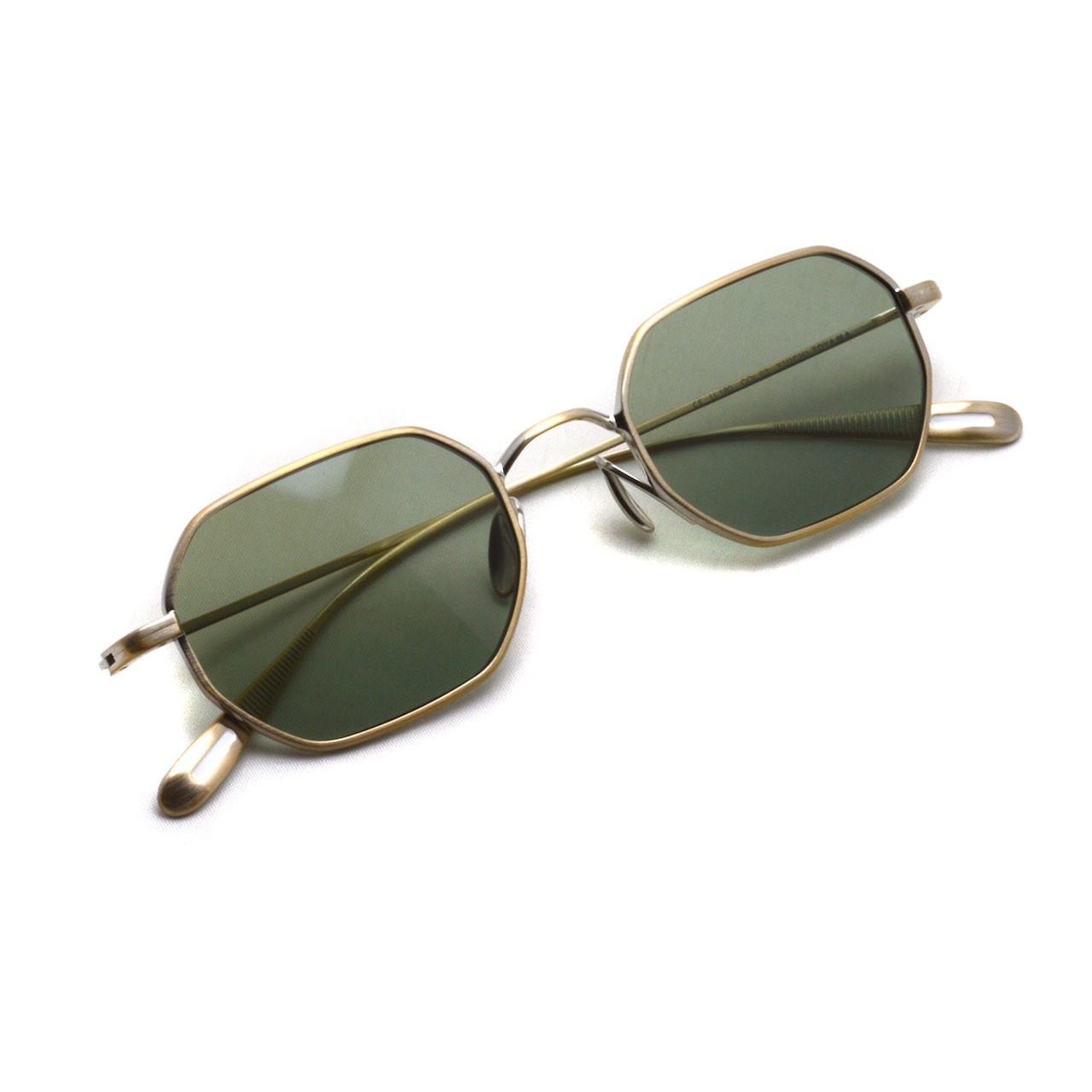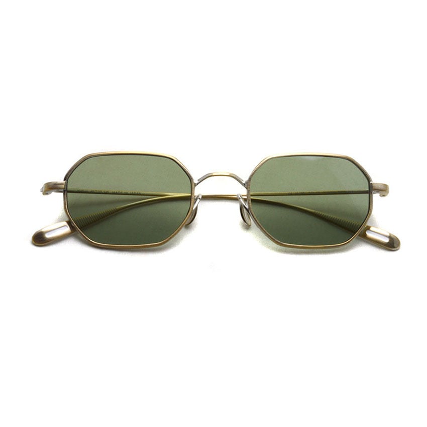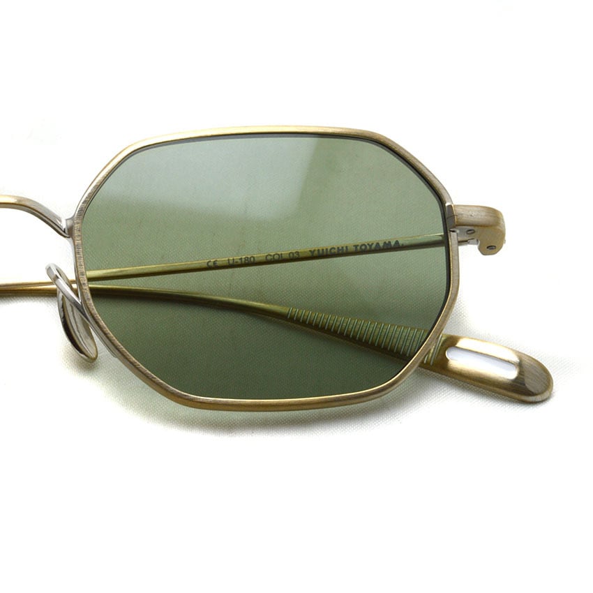 YUICHI TOYAMA / U-180 Nathan / SG 03 Omomuki オモムキ・アンティークシャンパンゴールド - グリーンレンズ オクタゴン スクエア レクタングル シートメタルサングラス ユウイチトヤマ -