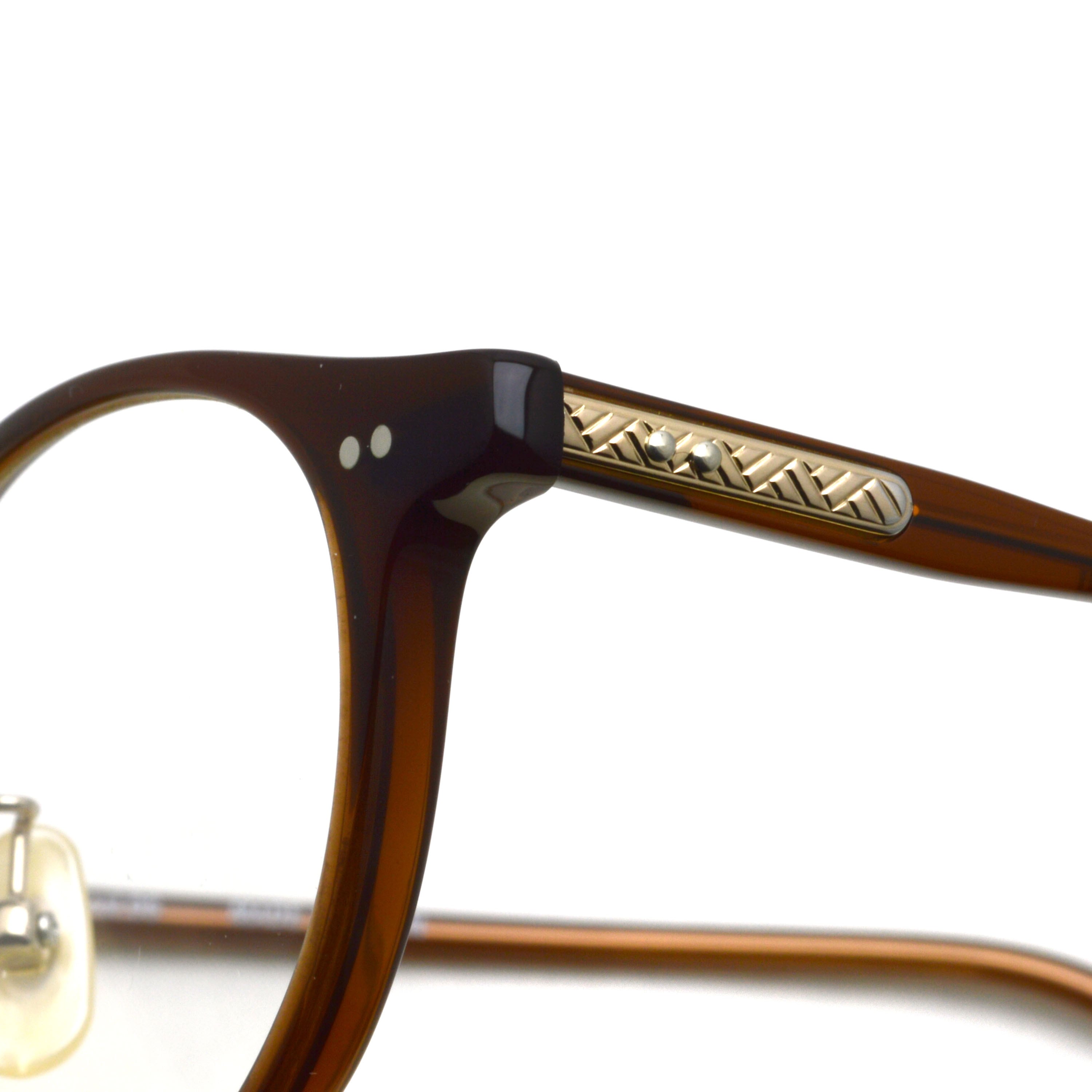 シンプルで美しいフロントシェイプに、伝統工芸などで用いられる網代紋様(アジロモンヨウ)のテンプル飾りで他とは違う雰囲気を生み出しています。