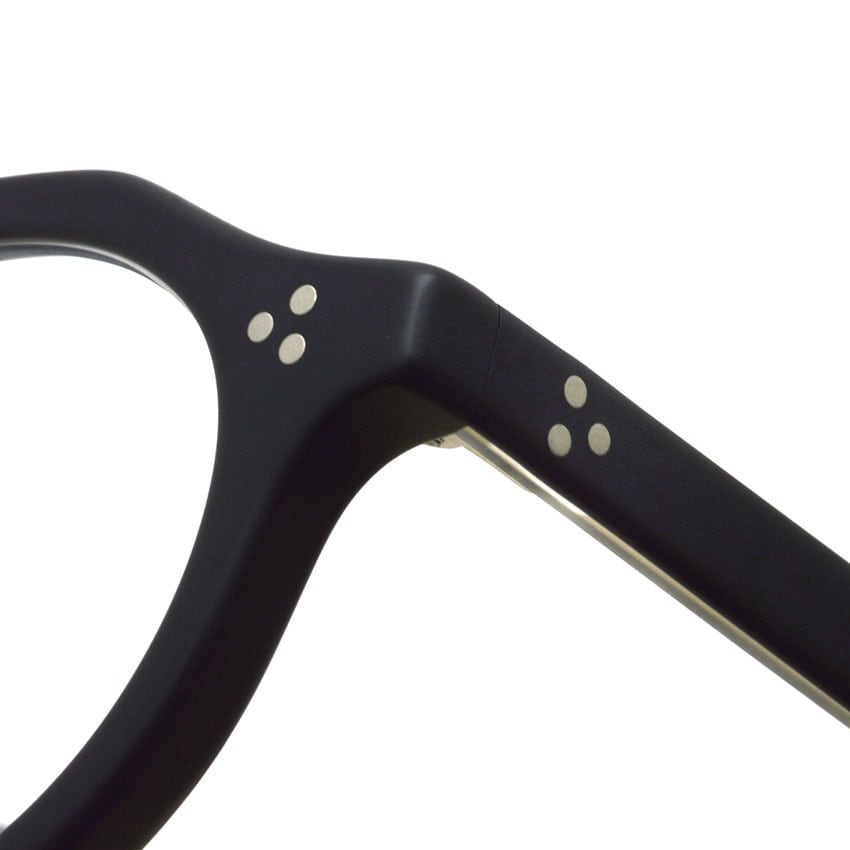 フロント、テンプル丁番は60sのデザインをオリジナルで再現し、製法も置き丁番でのカシメ技法を採用。