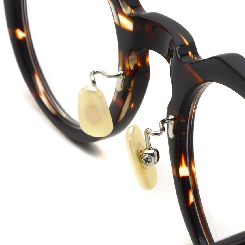 調整可能で掛け心地の良いメタルノーズパッドとテンプルエンドの手作業でのキザミ加工でフィティング性を高めています。