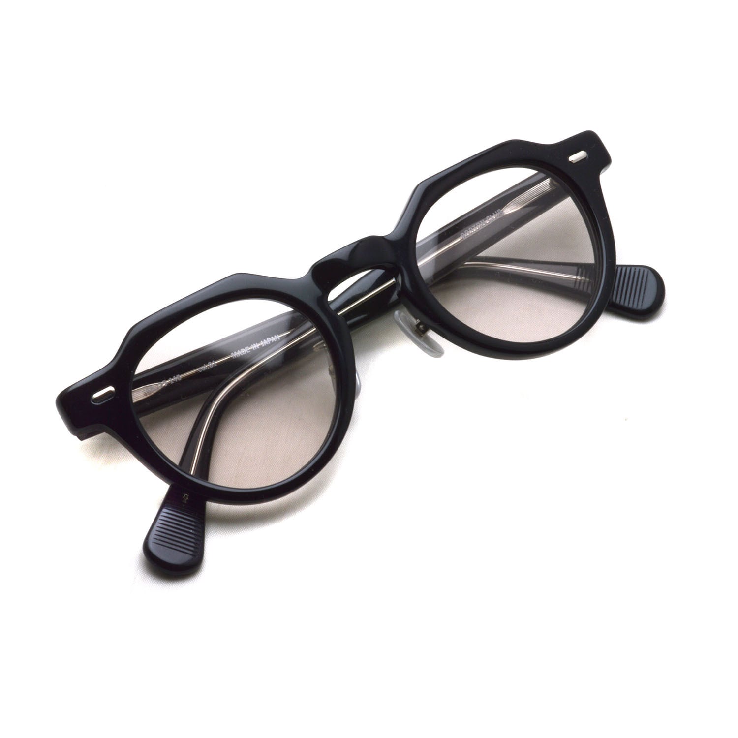 調整可能で掛け心地の良いメタルノーズパッドとテンプルエンドの手作業でのキザミ加工でフィティング性を高めています。