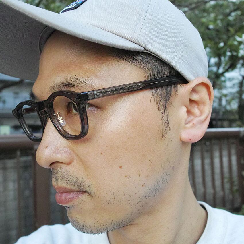 フレンチヴィンテージから着想を得た、エッヂのある肉厚なフロントと極太なワイドテンプルをEYEVAN流にデザインした人気モデル"SADLER"の調整可能なメタルパッドタイプ。