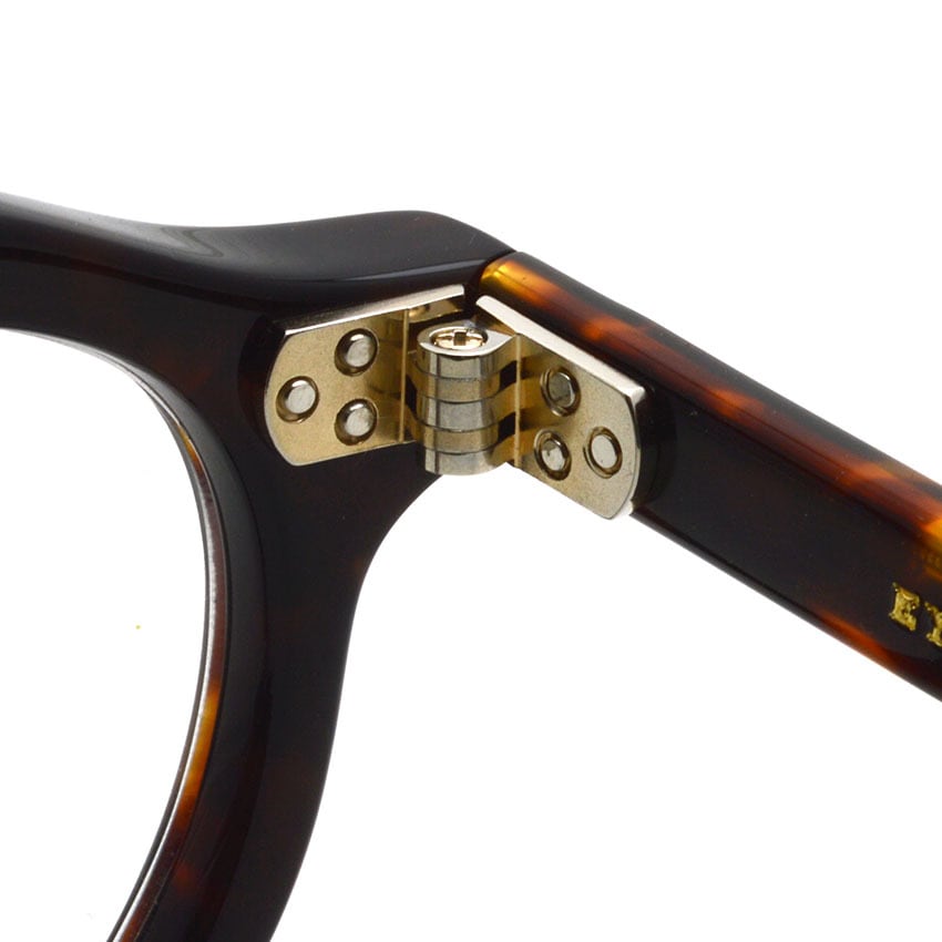 フロント、テンプル丁番は60sのデザインをオリジナルで再現し、製法も置き丁番でのカシメ技法を採用。