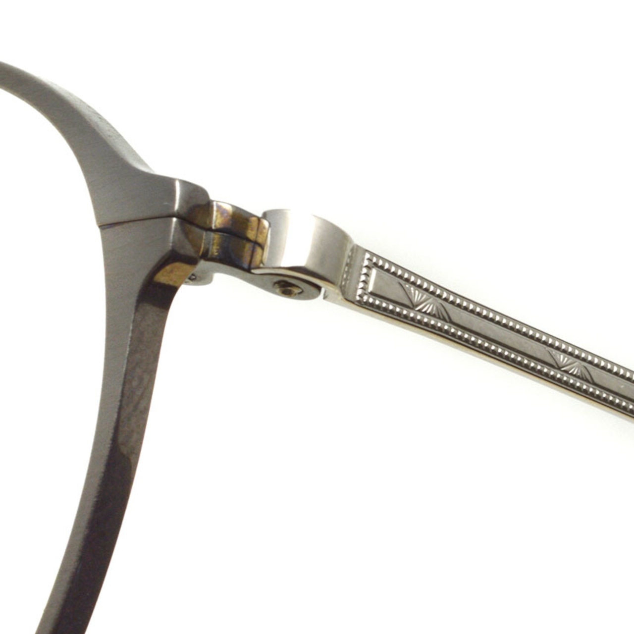 チタンシートのリムに、ヴィンテージ家具のパーツから着想を得たヨロイとブリッジをかしめたメタルフレーム。